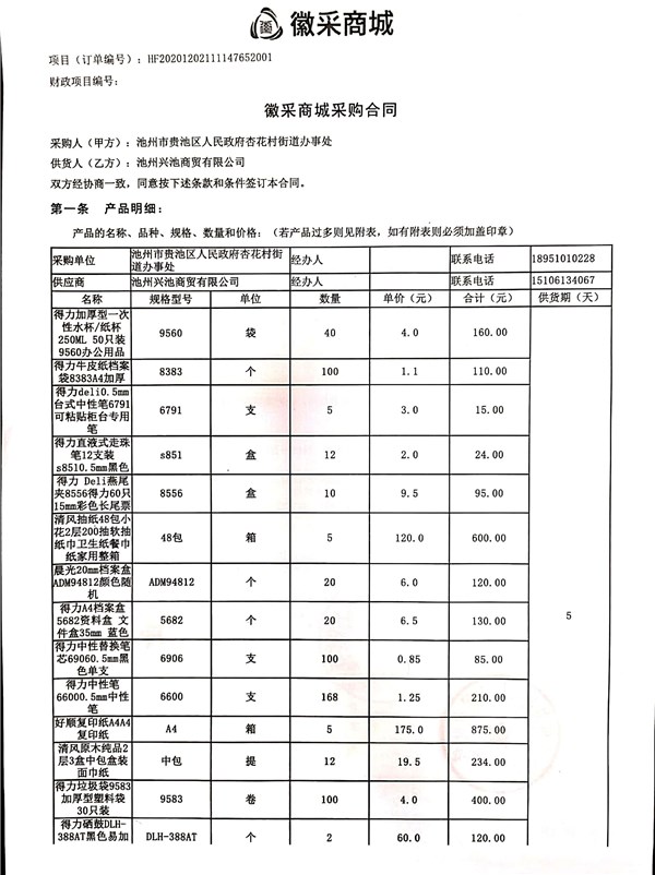 杏花村街道分散采購(gòu)訂立合同