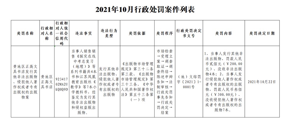 名稱: 2021年10月行政處罰案件列表 文號(hào):