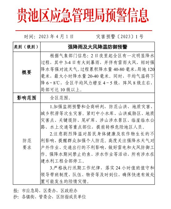 【氣象預(yù)警提示】強(qiáng)降雨及大風(fēng)降溫防御預(yù)警