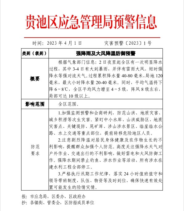 名稱: 【氣象預(yù)警】強降雨及大風(fēng)降溫預(yù)警 文號:
