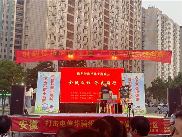 為提高轄區(qū)群眾反詐、辨詐意識(shí),共同守護(hù)好老百姓的錢(qián)袋子,8月8日晚,梅龍街道在錢(qián)溪社區(qū)觀港花園處舉辦“全民反詐、你我同行”主題晚會(huì),晚會(huì)邀請(qǐng)專業(yè)劇團(tuán)對(duì)發(fā)案率高、群眾損失大的刷單、網(wǎng)貸等詐騙案件進(jìn)行情景演繹,通過(guò)傳統(tǒng)戲曲、小品、快板的形式,將反詐知識(shí)傳遞給現(xiàn)場(chǎng)的觀眾;派出所、司法所的工作人員還現(xiàn)身說(shuō)“法”,針對(duì)演員所表演的作品進(jìn)行解析,告知群眾發(fā)生這種詐騙案件的原因,詐騙發(fā)生后應(yīng)該如何做來(lái)及時(shí)止損,通過(guò)演講結(jié)合的方式,加深觀眾印象,提高防范能力;錢(qián)溪社區(qū)的志愿者現(xiàn)場(chǎng)分發(fā)“平安建設(shè)一封信”和反詐報(bào)警小卡片,到場(chǎng)觀眾笑稱“來(lái)看演出不僅學(xué)到反詐知識(shí),還帶走了反詐手冊(cè)”;晚會(huì)現(xiàn)場(chǎng)還進(jìn)行了有獎(jiǎng)問(wèn)答活動(dòng),以“反詐小手袋”作為活動(dòng)獎(jiǎng)品,通過(guò)問(wèn)答的方式,提高了觀眾們的互動(dòng)性。增進(jìn)了群眾反詐、辨詐能力。本次活動(dòng)到場(chǎng)觀眾300余人,懸掛橫幅3條,宣傳展板2個(gè),分發(fā)“平安建設(shè)一封信”、反詐報(bào)警小卡片等宣傳單頁(yè)200余份、獎(jiǎng)品“反詐小手袋”12個(gè)。
