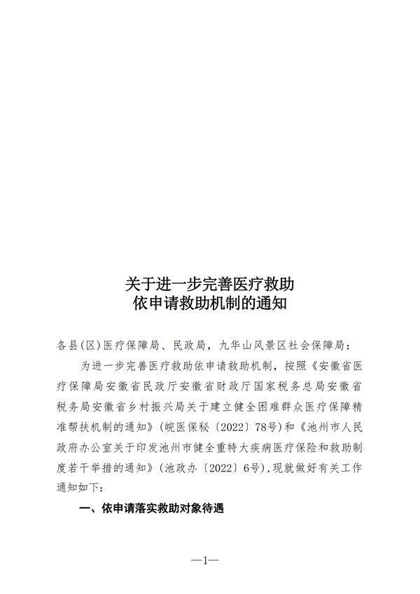 池州市醫(yī)療保障局辦公室印發(fā)《關(guān)于進(jìn)一步完善醫(yī)療救助依申請(qǐng)救助機(jī)制》的通知