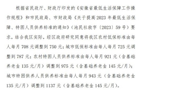 2024年貴池區(qū)最低生活保障和特困供養(yǎng)標(biāo)準(zhǔn)