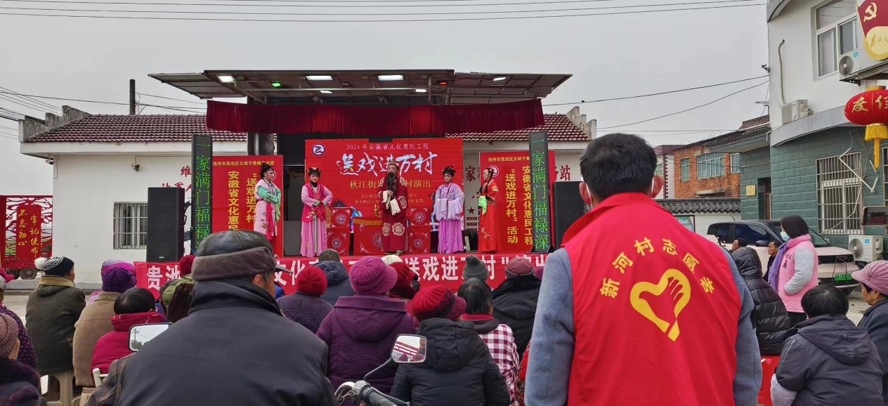 為進(jìn)一步豐富基層群眾文化生活,弘揚(yáng)和傳承中華民族優(yōu)秀傳統(tǒng)文化,滿足廣大人民群眾的精神文化需求,近日,安徽省文化惠民工程“送戲進(jìn)萬(wàn)村”演出活動(dòng)走進(jìn)貴池區(qū)秋江街道新河村和谷塘村上演。本次活動(dòng)由安徽省文化和旅游廳主辦、貴池區(qū)文化和旅游局承辦。