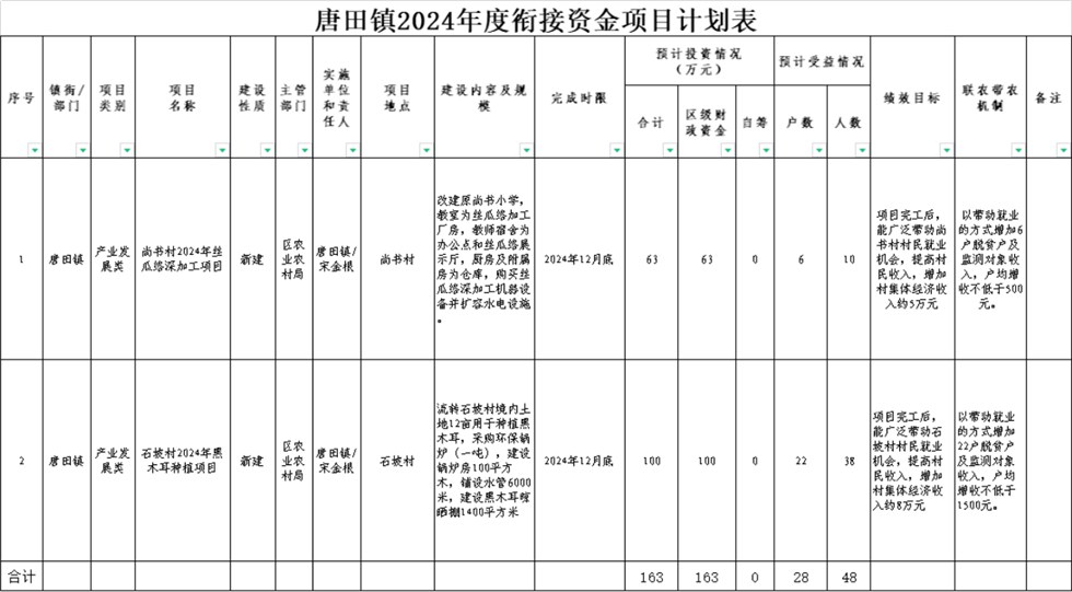 附件:唐田鎮(zhèn)2024年度銜接資金項(xiàng)目計(jì)劃表