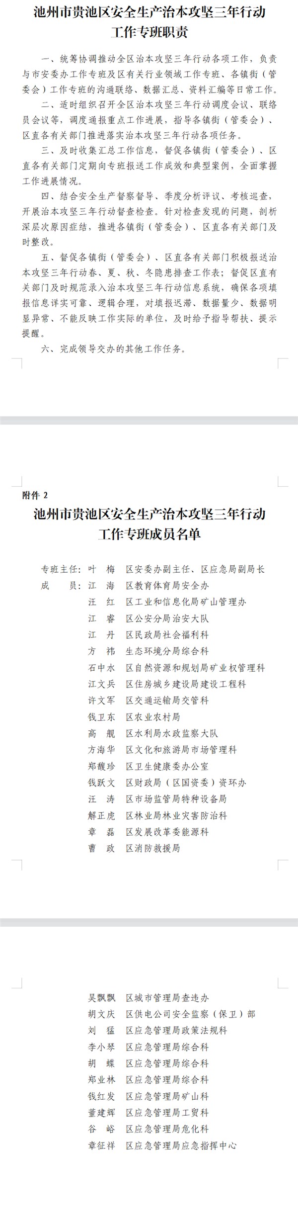 《池州市貴池區(qū)安全生產(chǎn)治本攻堅三年行動工作專班職責(zé)》