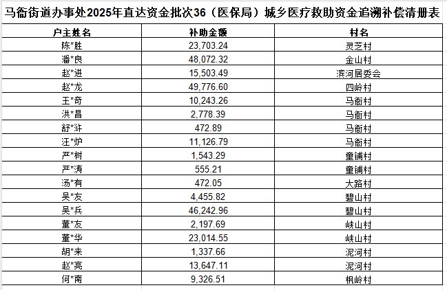 馬衙街道辦事處2025年度第一季度城鄉(xiāng)醫(yī)療救助資金追溯補償