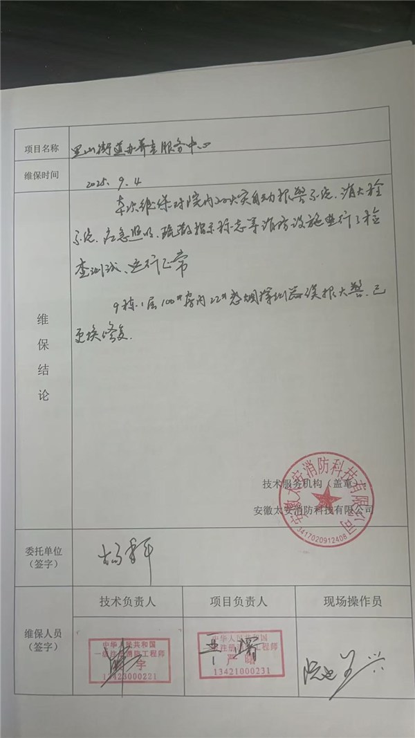 里山街道敬老院建筑消防設施月度維保報告(2025年9月)