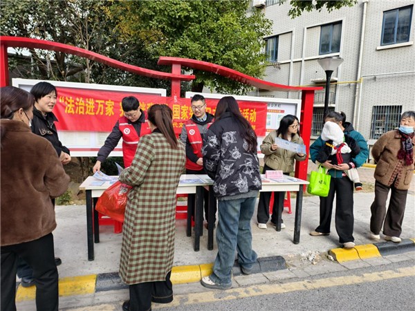 活動現(xiàn)場,社區(qū)志愿者首先通過懸掛宣傳橫幅、發(fā)放憲法、民法典等法律常識及各類反電詐、反邪教知識的宣傳單頁、手冊等形式,營造出濃厚的宣傳氛圍。隨后,法院工作人員和律師結(jié)合居民日常生活實際,用通俗易懂的語言、生動鮮活的案例,重點解讀了公民的基本權(quán)利與義務(wù)、婚姻家庭、財產(chǎn)繼承、鄰里糾紛調(diào)解、老年人權(quán)益保護等與群眾切身利益密切相關(guān)的法律條款,過往居民紛紛駐足聆聽?!斑@宣傳活動真不錯!咱們在家門口就能學(xué)到實用的法律知識!”小區(qū)居民王大爺捧著宣傳單頁,樂呵呵地說道。