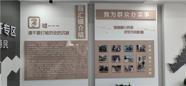 專區(qū)建設(shè)面積50㎡,整體設(shè)計莊重大方、簡樸整潔,顏色以灰色為主色調(diào),采用“灰底白字”樣式?!耙髤R鎮(zhèn)政務(wù)公開專區(qū)”名稱標識下方設(shè)置“政務(wù)公開,陽光惠民”字樣。殷匯鎮(zhèn)政務(wù)公開專區(qū)從策劃到建成歷時一個月。