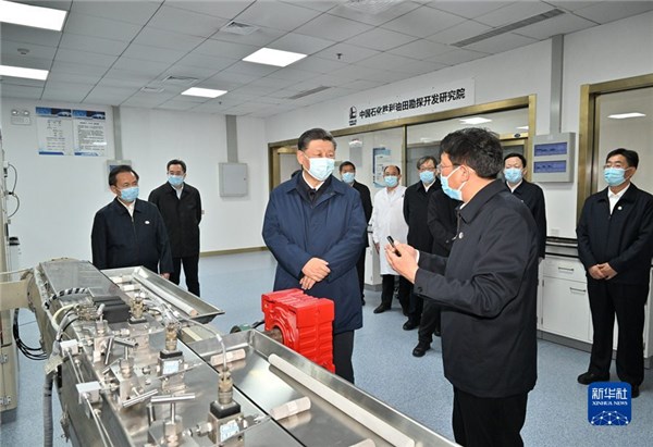 21日下午,習(xí)近平來到勝利油田勘探開發(fā)研究院,了解油田開發(fā)建設(shè)歷程和研究院總體情況,走進頁巖油實驗室、二氧化碳氣驅(qū)實驗室,聽取油田堅持自主創(chuàng)新、加快技術(shù)攻關(guān)應(yīng)用、保障國家能源安全等情況介紹。習(xí)近平強調(diào),解決油氣核心需求是我們面臨的重要任務(wù)。要加大勘探開發(fā)力度,夯實國內(nèi)產(chǎn)量基礎(chǔ),提高自我保障能力。要集中資源攻克關(guān)鍵核心技術(shù),加快清潔高效開發(fā)利用,提升能源供給質(zhì)量、利用效率和減碳水平。他指出,石油戰(zhàn)線始終是共和國改革發(fā)展的一面旗幟,要繼續(xù)舉好這面旗幟,在確保國家能源安全、保障經(jīng)濟社會發(fā)展上再立新功、再創(chuàng)佳績。