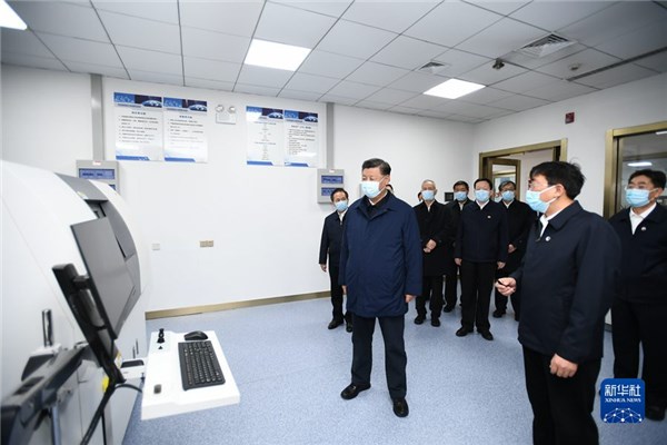 10月22日下午,中共中央總書記、國家主席、中央軍委主席習(xí)近平在山東省濟南市主持召開深入推動黃河流域生態(tài)保護和高質(zhì)量發(fā)展座談會并發(fā)表重要講話。這是座談會前,習(xí)近平21日下午在位于東營市萊州灣的勝利油田萊113區(qū)塊考察時,登上二層鉆井平臺,察看鉆井自動化設(shè)備。 新華社記者 李學(xué)仁 攝