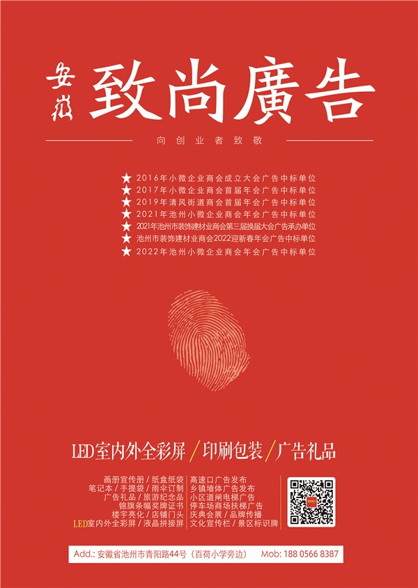 安徽致尚廣告有限公司主營印刷包裝、室內(nèi)外LED顯示屏制作安裝及維修、廣告禮品。