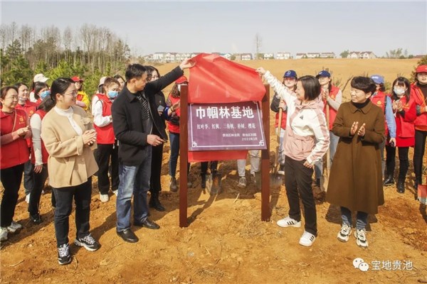 植樹結(jié)束后,程菲菲為“巾幗林基地”進(jìn)行了揭牌。據(jù)了解,“巾幗林基地”是區(qū)婦聯(lián)第一個造林基地,該基地主要種植紅葉李、紅楓、三角楓、樸樹、櫻花等。區(qū)婦聯(lián)相關(guān)負(fù)責(zé)人表示;“成立該基地是希望引導(dǎo)更多的人來參與植樹造林,推動‘綠水青山就是金山銀山’理念在我區(qū)落實落地?!?