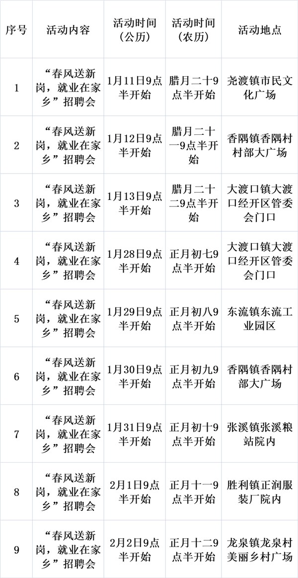 就業(yè)在家鄉(xiāng)”鄉(xiāng)鎮(zhèn)專場招聘會預(yù)安排表↓↓↓