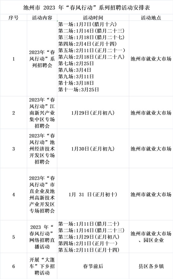 東至縣人力資源和社會保障局將聯(lián)合經(jīng)開區(qū)管委會和各鄉(xiāng)鎮(zhèn)于2023年1月-2月在部分鄉(xiāng)鎮(zhèn)舉辦東至縣2023年“春風(fēng)送新崗,就業(yè)在家鄉(xiāng)”鄉(xiāng)鎮(zhèn)系列招聘會。