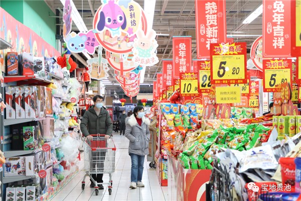 1月8日上午12點多,在大潤發(fā)超市,絡繹不絕的人們大多是家庭式、情侶式全員出動購物,雖然進入超市不用再掃場所碼、也無需測溫,但市民都非常自覺地佩戴好口罩,做自己健康的第一責任人。隨著春節(jié)腳步的臨近,整個大潤發(fā)超市也換上了“新衣”,火紅的春聯(lián)、紅包、中國結,精美的禮盒、新衣、大禮包,處處呈現(xiàn)一派喜氣洋洋紅紅火火的氛圍。超市內專門設置的年貨大街區(qū)域,琳瑯滿目的商品吸引了不少市民駐足選購。大潤發(fā)客服經(jīng)理田春寧說:“目前,我們已經(jīng)明顯感受到了市民的消費熱情了,現(xiàn)在每天的銷量都呈直線式上升趨勢。新冠病毒感染實施‘乙類乙管’后,相信經(jīng)濟能夠快速得到復蘇。我們將繼續(xù)做好日常的通風消殺工作,提倡群眾進行自助式結賬,盡量減少接觸。同時,會不斷豐富貨源,以滿足市民一站式購齊年貨的需求。”