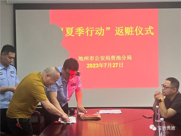 這一幕發(fā)生在池州市公安局貴池分局舉行的“夏季行動”返贓儀式現(xiàn)場。7月27日上午,該局在池口派出所集中返還在系列砸車窗案件辦理中為群眾追回的財物。面帶喜悅、翹首以盼等待接受退還財物的受害群眾正互相談?wù)撝哉勯g對民警破案挽損速度之快贊不絕口?!疤兄x咱們民警了,竟然幾個小時內(nèi)就把案件破了,真的在我的意料之外,這就是咱們貴池公安的速度!”受害群眾陳女士從民警手中接過信封后感慨道??粗F(xiàn)場受害群眾迫不及待清點著剛剛“失而復(fù)得”的財物,并不時地露出喜悅笑容,民警連日來的辛勞疲憊也一掃而光,取而代之的是為群眾排憂解難帶來的滿滿的成就感和幸福感。