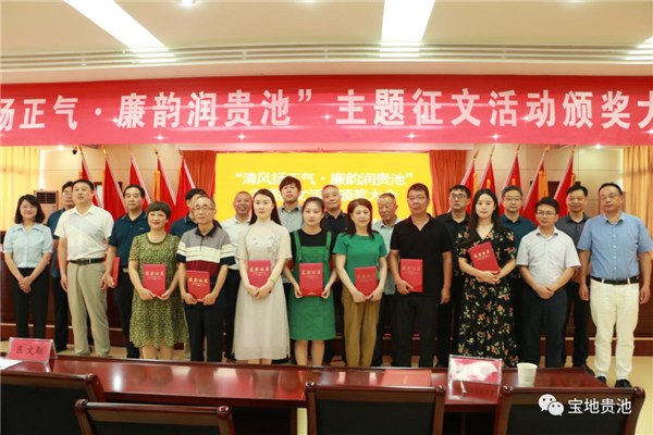 7月27日,貴池區(qū)“清風(fēng)揚(yáng)正氣·廉韻潤(rùn)貴池”主題征文活動(dòng)頒獎(jiǎng)大會(huì)舉辦。區(qū)委常委、區(qū)紀(jì)委書(shū)記、區(qū)監(jiān)委代主任王陽(yáng)明,區(qū)委常委、宣傳部部長(zhǎng)黃秋龍出席頒獎(jiǎng)儀式并為獲獎(jiǎng)?wù)哳C獎(jiǎng)。
