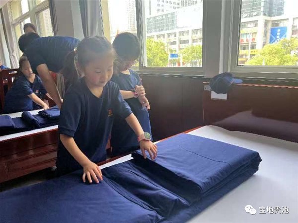 除了這些消防知識和技能的學(xué)習(xí),整理內(nèi)務(wù)也是“小消防員”的必修課,孩子們現(xiàn)場觀摩了消防員疊“豆腐塊”后,很快也掌握了其中要領(lǐng),迫不及待各自嘗試起來?!跋绬T叔叔疊得有棱有角,以后每天我也按這個方法來疊被子。”