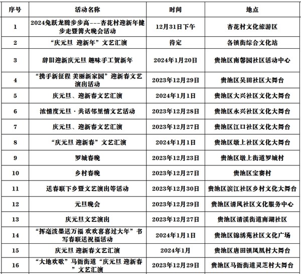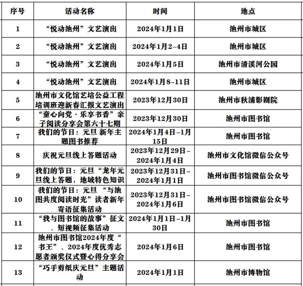 為豐富廣大市民和游客節(jié)假日生活,元旦期間池州將開(kāi)展系列文旅活動(dòng),既有旅游惠民促銷(xiāo)類(lèi),也有文藝演出類(lèi),既有閱讀推廣類(lèi),也有非遺民俗類(lèi)。
