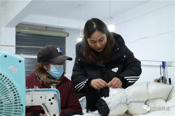 辦事干練,但氣質(zhì)溫和,這是很多人見到何海霞后留下的第一印象。走進(jìn)海霞制衣廠,不大不小的四層樓里有著三條生產(chǎn)線,而在三樓的生產(chǎn)線上,何海霞正在給一線工人講解技術(shù)要點。“制衣廠的工作是計件結(jié)算,時間上比較靈活,在就近工作的同時也能照顧到家里,中午接孩子回來還能在廠里一起吃飯,非常方便?!睂τ谥苓叴迕駚碚f,海霞制衣廠是就近就業(yè)的便捷選擇。