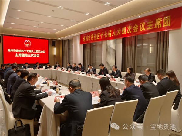 1月5日下午,池州市貴池區(qū)第十七屆人民代表大會第四次會議主席團第三次會議召開。市委常委、區(qū)委書記、大會主席團常務(wù)主席馬勝利主持會議。