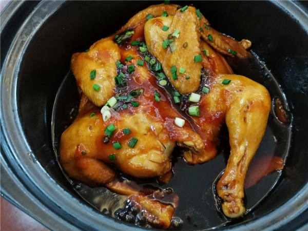 這是梅龍街道一特色美食,將處理干凈的土雞放入砂鍋中,加入姜片、八角等調(diào)料,倒入秘制神仙雞醬料,加入黃酒沒(méi)過(guò)食材;砂鍋蓋上蓋子,放在燒熱的石子上燜煮7個(gè)小時(shí)即可。