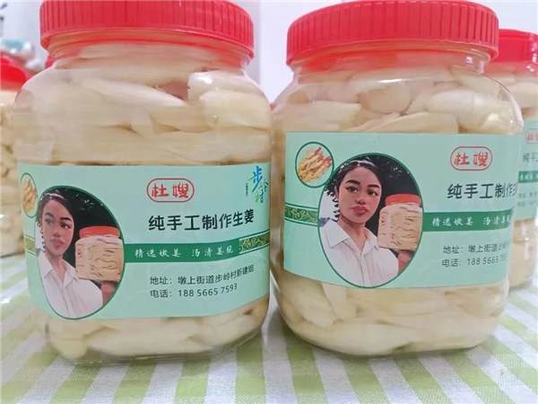 步嶺村杜嫂牌生姜,純手工制作,湯清姜脆。生姜,中藥名生姜味辛,性微溫。歸肺、脾、胃經(jīng)。具有解表散寒、溫中止嘔、溫肺止咳、解毒的功效,常用于風(fēng)寒感冒,脾胃寒癥,胃寒嘔吐,肺寒咳嗽,解魚蟹毒。