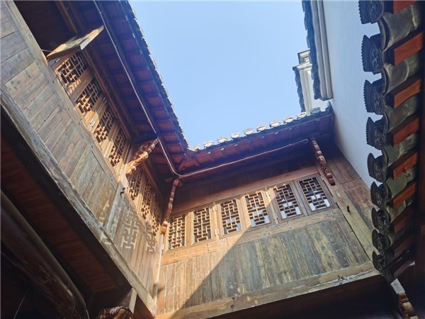 徽派民居以高深的天井為中心形成的內(nèi)向合院,四周高墻圍護(hù),雨天落下的雨水從四面屋頂流入天井,俗稱“四水歸堂”,也形象地反映了徽商“肥水不流外人田”的心態(tài)。