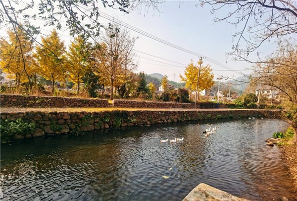 “門前大橋下~游過一群鴨~快來快來數(shù)一數(shù)~二四六七八......”一首膾炙人口的兒歌畫面照進現(xiàn)實。冬日晴好,小編跟隨當(dāng)?shù)叵驅(qū)В咴L了位于里山街道北部的古村落——元四村。這里地理環(huán)境獨特,北依太樸山,中心村莊坐落于來龍山山腳,東、西兩條溪水抱村環(huán)繞匯入村前,形成二水合抱之景。