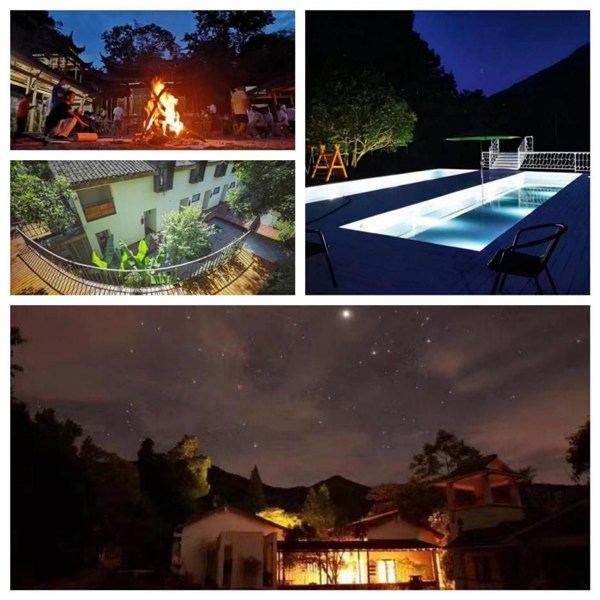 秋浦仙居民宿不僅有好吃的,還有好玩的。和孩子們體會(huì)過(guò)“華東最長(zhǎng)溶洞”3.5公里的地質(zhì)景觀,回來(lái)的一路上有生機(jī)勃勃的各種野花綠草,在霖雨峽谷溯溪、撿石頭、畫(huà)石頭……回到民宿,這里的“泳池趴”也能讓孩子們樂(lè)不思蜀。支起帷幕,看一場(chǎng)露天電影;游泳池里盡情玩水嬉戲;天晴氣爽時(shí),牽著愛(ài)人、孩子的手散個(gè)步,看看星空,銀河燦爛。