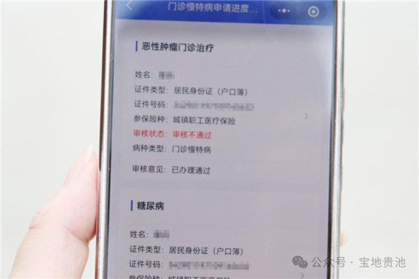 日前,貴池區(qū)的周女士(化名)遇到了一件“怪事”。她愛(ài)人因直腸惡性腫瘤奔波醫(yī)治而花費(fèi)了不少費(fèi)用,于是她在“安徽醫(yī)保公共服務(wù)”小程序上進(jìn)行門(mén)診慢特病申請(qǐng),但是沒(méi)想到不一會(huì)就顯示為“審核不通過(guò)”?!拔宜械牟牧隙紲?zhǔn)備齊全并提交了,申請(qǐng)卻沒(méi)通過(guò)?!闭?dāng)她納悶?zāi)膫€(gè)環(huán)節(jié)出現(xiàn)問(wèn)題時(shí),卻發(fā)現(xiàn)審核意見(jiàn)一欄顯示為“已辦理通過(guò)”。一頭霧水的她向貴池區(qū)醫(yī)療保障服務(wù)中心的工作人員進(jìn)行了咨詢,原來(lái)是因?yàn)椤凹瓷昙聪怼被菝癖忝裾甙l(fā)揮了作用。