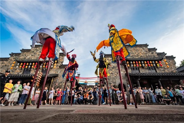 小鎮(zhèn)內大型實景劇《儺王傳奇》每晚八點上演(每周一公休),把千年儺戲活化,打造一場儺戲盛典,將表演秀、燈光秀、煙花秀、徽派建筑秀完美融合。