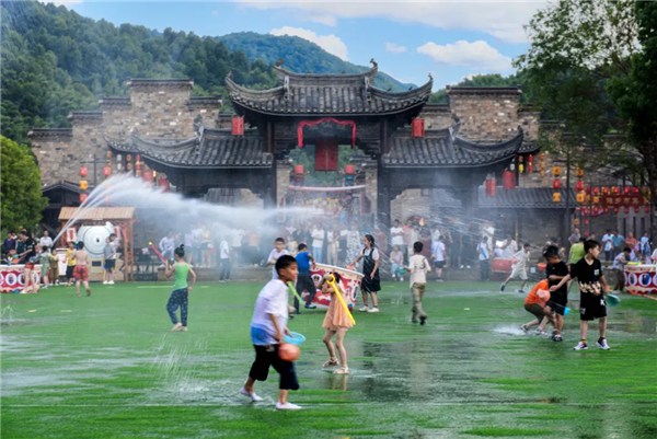 夏日夜晚,位于安徽省池州市的儺仙鎮(zhèn)景區(qū)流光溢彩,儺仙鎮(zhèn)圣水狂歡節(jié)7月6日起每天晚上6點邀您嗨?。恐芤还荩?/b>以水為樂,肆意潑灑,現(xiàn)場充滿了無限活力與清涼。