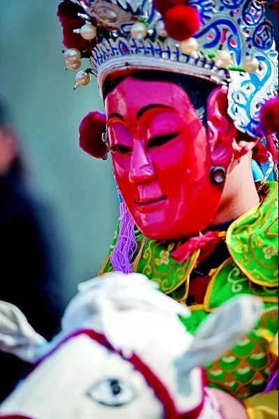 佩戴頭飾的池州儺戲演員 饒頤/攝