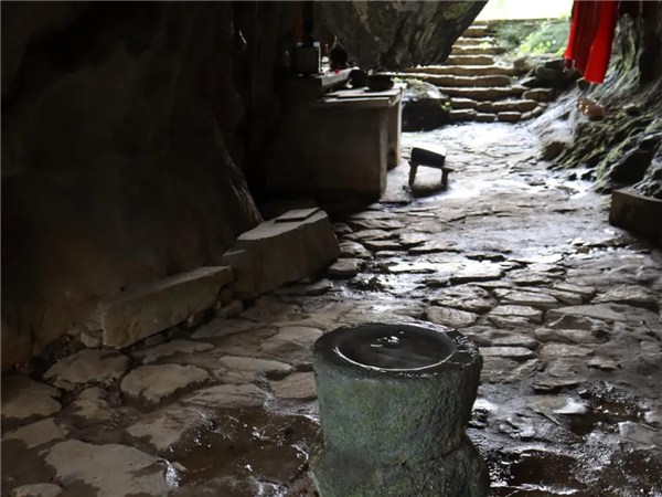 溶洞內(nèi)水滴之處建有石柱容器,聽(tīng)村民說(shuō),這里面的水可以拿來(lái)洗眼睛,有“明目”之效。洞內(nèi)石臺(tái)之上還供有觀音像,保佑一方安寧。