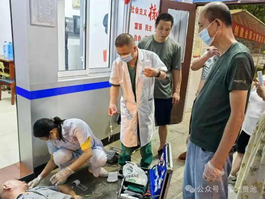 正在校門口等兒子下課的程媛,聽到這個消息,立馬跑到保安室??吹揭晃?0多歲的保安大叔,渾身抽搐,嘴唇烏紫,慢慢從椅子上往一邊倒。由于情況緊急,程媛來不及多想,一個箭步上前,立馬把保安從椅子上移下來,讓他躺在地上,自己半跪著,一手托住他的頭,靠在自己的懷里,轉(zhuǎn)眼間,保安便陷入半昏迷狀態(tài)。程媛叫住驚慌失措的女家長,讓她馬上撥打120急救電話,并讓她立馬去學(xué)校找老師過來。