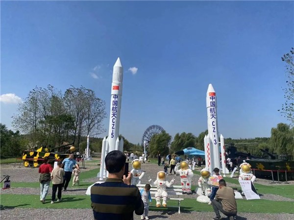 殲十戰(zhàn)斗機(jī)、武直-10武裝直升機(jī)、長(zhǎng)征3號(hào)火箭......國(guó)慶假期期間,在杏花村文化旅游區(qū),20件精心制作、一比一還原的武器裝備模型一一亮相。