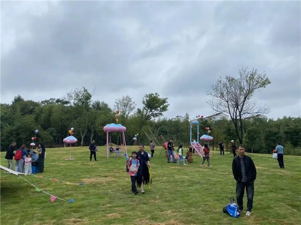 天幕帳篷、網(wǎng)紅秋千、休閑吊床…… 躺進(jìn)綠色草地的懷抱里,孩童們或在草地上自由自在地奔跑嬉戲,或在游樂設(shè)施上玩得不亦樂乎,或在網(wǎng)紅打卡處拍照留念,記錄美好瞬間。