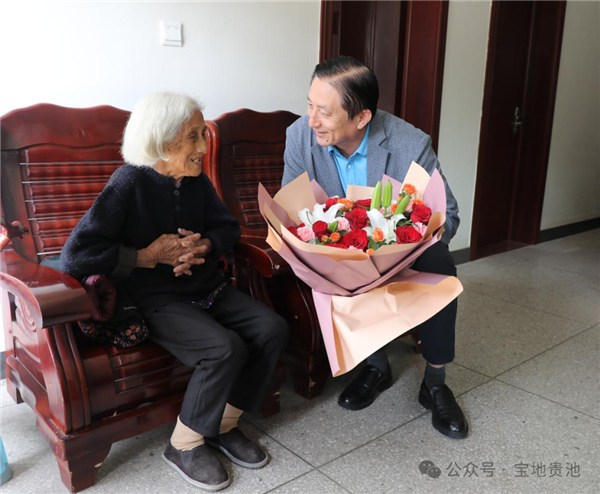 10月10日上午,區(qū)人大常委會(huì)主任吳波前往梅村鎮(zhèn)十字村,看望慰問百歲老人江貴榮,向老人致以節(jié)日問候和美好祝福。