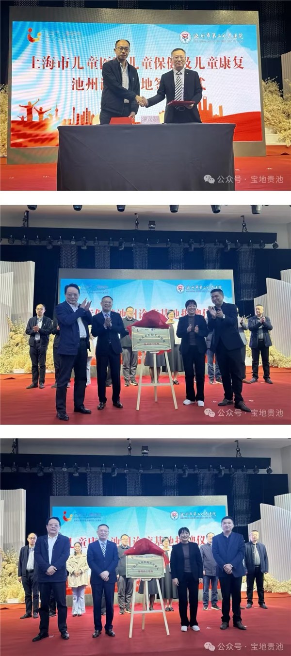 10月23日上午,上海市兒童醫(yī)院兒童保健及兒童康復(fù)池州診療基地合作簽約及揭牌儀式舉辦,上海市兒童醫(yī)院黨委委員、副院長楊曉東,市殘聯(lián)黨組書記、理事長黃偉,區(qū)委常委、副區(qū)長汪賽榮見證簽約并為其揭牌。