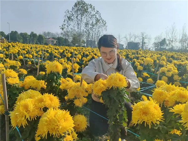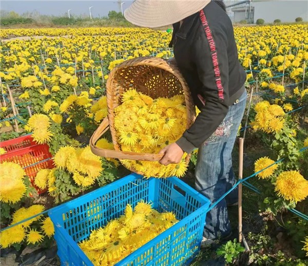 “我們基地以土地流轉(zhuǎn)、村民務(wù)工等方式幫助群眾增加收入。同時,菊花采摘期用工量增加了不少,平均每天需要20余人前來采摘,高峰期達到40余人,整個花期發(fā)放工資達到20萬元左右。看著帶動了本村農(nóng)戶增收,我們都從心底里高興?!被刎撠?zé)人方學(xué)敏一臉喜悅地說道。