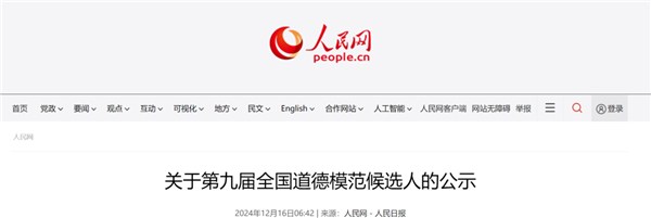 發(fā)布《關于第九屆全國道德模范候選人的公示》