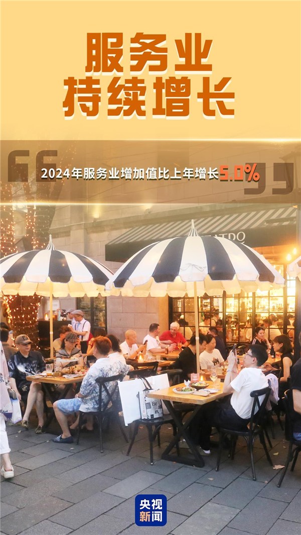 2024年,服務(wù)業(yè)增加值在GDP中的比重提高到約56.7%,信息傳輸、軟件和信息技術(shù)服務(wù)業(yè)增加值增長10.9%,領(lǐng)跑服務(wù)業(yè)。服務(wù)業(yè)蓬勃發(fā)展可以更好滿足人民美好生活的需要,也創(chuàng)造出更多新需求和新崗位,光是2024年發(fā)布的新職業(yè)就有19項(xiàng)。