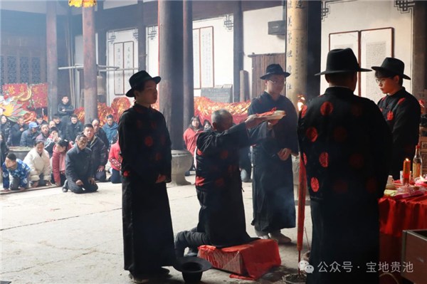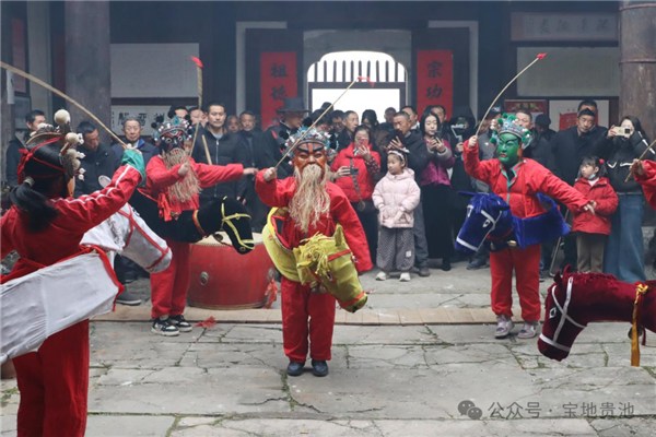 尤為值得一提的是,今年的儀式上,還融入了一場(chǎng)別開生面的儺戲表演。五位小演員身著“踹竹馬”的戲服,臉戴儺面,以稚嫩卻認(rèn)真的身姿,跳起了儺舞。近年來(lái),“儺戲進(jìn)校園”等活動(dòng)的開展,不僅吸引了眾多青少年加入儺戲表演行列,也讓這一古老的文化藝術(shù)得以更好地傳承與發(fā)展。