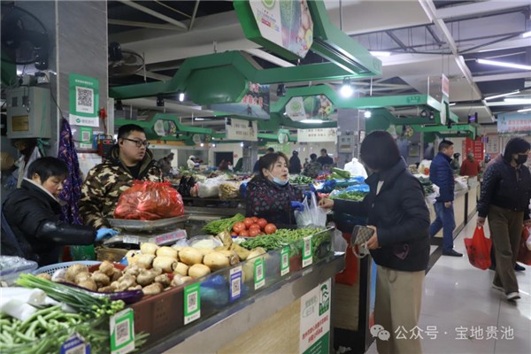 “以前總愛囤年貨,擔(dān)心買不到、買貴了,現(xiàn)在啥都能買到,價格也跟平時差不多,我基本上每天都來買新鮮的,這讓我們老百姓心里踏實?!笔忻裾矟嵰贿吿暨x蔬菜一邊告訴記者。據(jù)該農(nóng)貿(mào)市場黨支部書記陳誠介紹,早在半個月前,市場便提醒商戶做好產(chǎn)銷對接、提前備貨等工作,近期該市場蔬菜上市量穩(wěn)定在每天14000斤左右,肉類穩(wěn)定在4000斤左右,水果穩(wěn)定在3000斤左右,水產(chǎn)、干貨等也加大了供應(yīng)量,供應(yīng)總量相較平時增長了約30%,完全能夠滿足市民的日常需求。