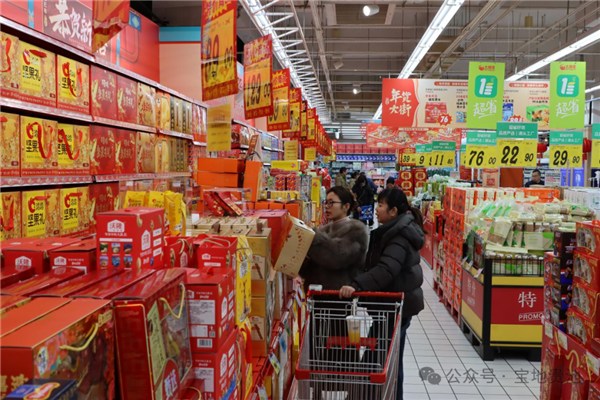 該門店客服經(jīng)理方菊花告訴記者,為了迎接春節(jié)銷售高峰,商超提前進(jìn)行了充足的備貨,包括加大對糧油、蔬菜、肉類等生活必需品的采購力度。而在春節(jié)前后,該門店還積極推出一系列促銷活動,特別是在“惠民菜籃子”區(qū)適當(dāng)增加了低價菜的銷售,讓市民能夠以優(yōu)惠的價格購置年貨。目前,該商超人流量相較平時翻了一番,商品銷售額增長了近3倍。