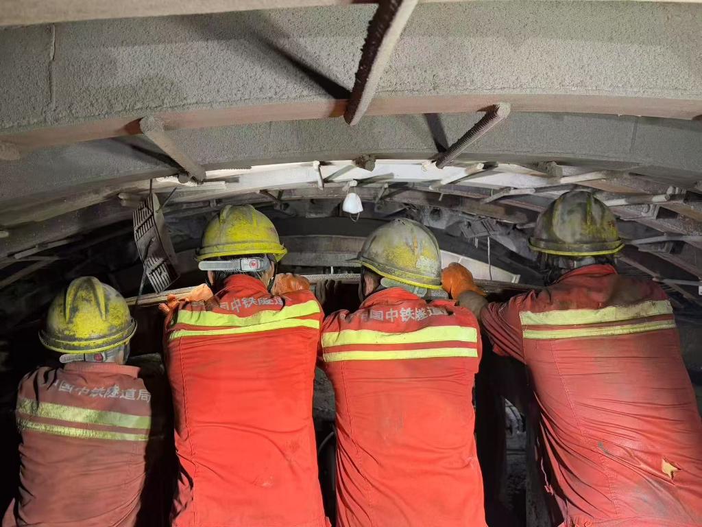 2月5日上午,建設(shè)者在滇中引水工程香爐山隧洞掌子面施工。(受訪者供圖)