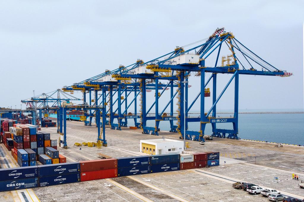 這是2月21日在喀麥隆南部大區(qū)的克里比拍攝的喀麥隆克里比深水港二期照片(無人機照片)。由中國港灣工程有限責(zé)任公司(中國港灣)承建的喀麥隆克里比深水港二期工程交工儀式21日在克里比深水港碼頭舉行。新華社發(fā)(科普索攝)